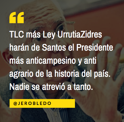 7. TLC más Ley UrrutiaZidres harán de Santos el Presidente más anticampesino y anti agrario de la historia del país. Nadie se atrevió a tanto.