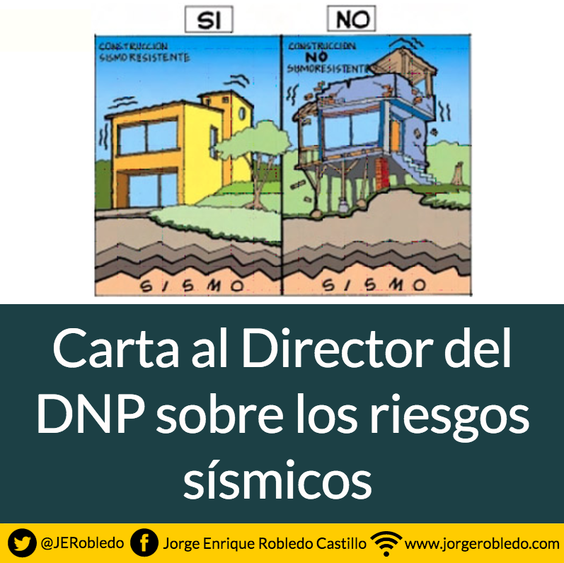 El senador Jorge Enrique Robledo le envía una carta al Director del Departamento Nacional de Planeación Simón Gaviria en la que advierte sobre el gran riesgo sísmico de Colombia y señala la necesidad de emprender con urgencia una vigorosa campaña nacional de educación en sismo resistencia.