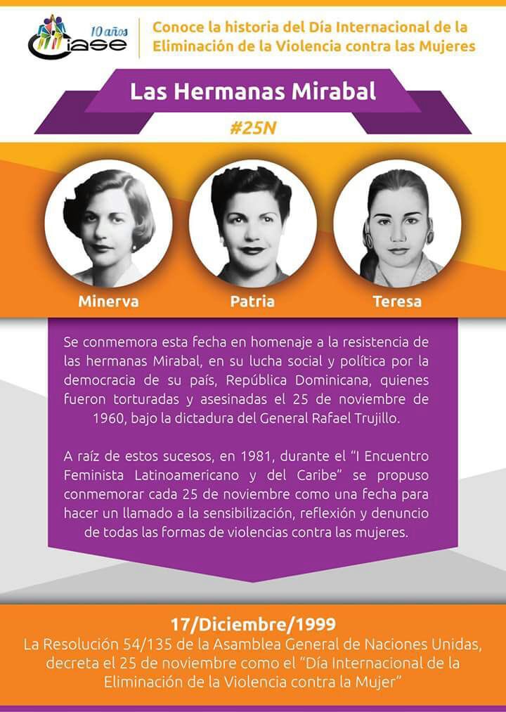 El 25 de noviembre de 1960 pasó a la historia. Tres valerosas mujeres murieron porque se atrevieron a protestar exigiendo garantías para todos, mujeres y hombres. Como ellas, somos miles de mujeres que hoy tenemos la responsabilidad histórica de luchar con empeño contra gobiernos que como el de Santos ejercen violencia contra la mujer.