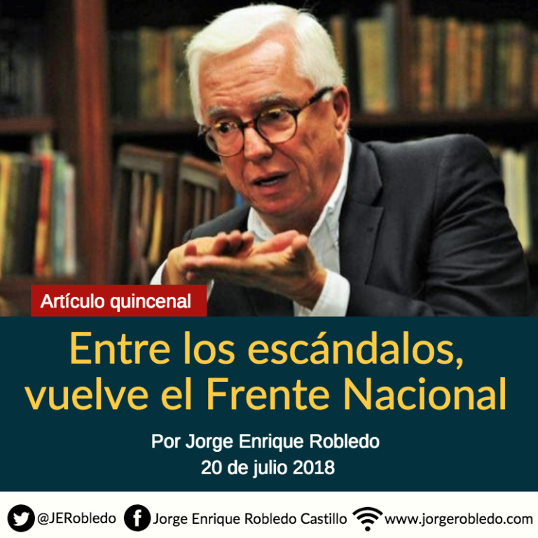 Coletilla: son de pésimas consecuencias para Colombia las primeras decisiones de Iván Duque. 1. La gira por el exterior para rendirles pleitesía a los poderes globales que definen, para mal, el rumbo del país. 2. El gabinete de descarado origen neoliberal y plutocrático. 3. La reconstitución, con uribistas y santistas, del Frente Nacional en el Congreso, movida que confirma lo mucho que ha tenido de farsa la pelea de perros y gatos entre el Centro Democrático y la Unidad Nacional, más el notorio estilo santista en no pocos de los movimientos de Duque, es decir, calculado para engañar incautos y justificar volteretas.