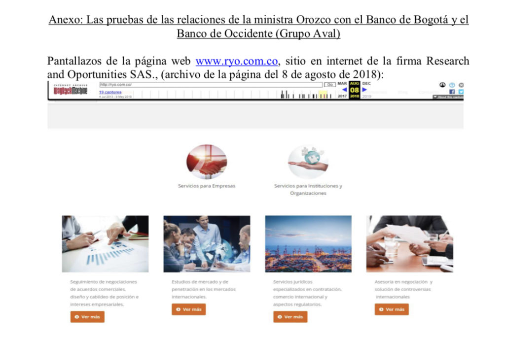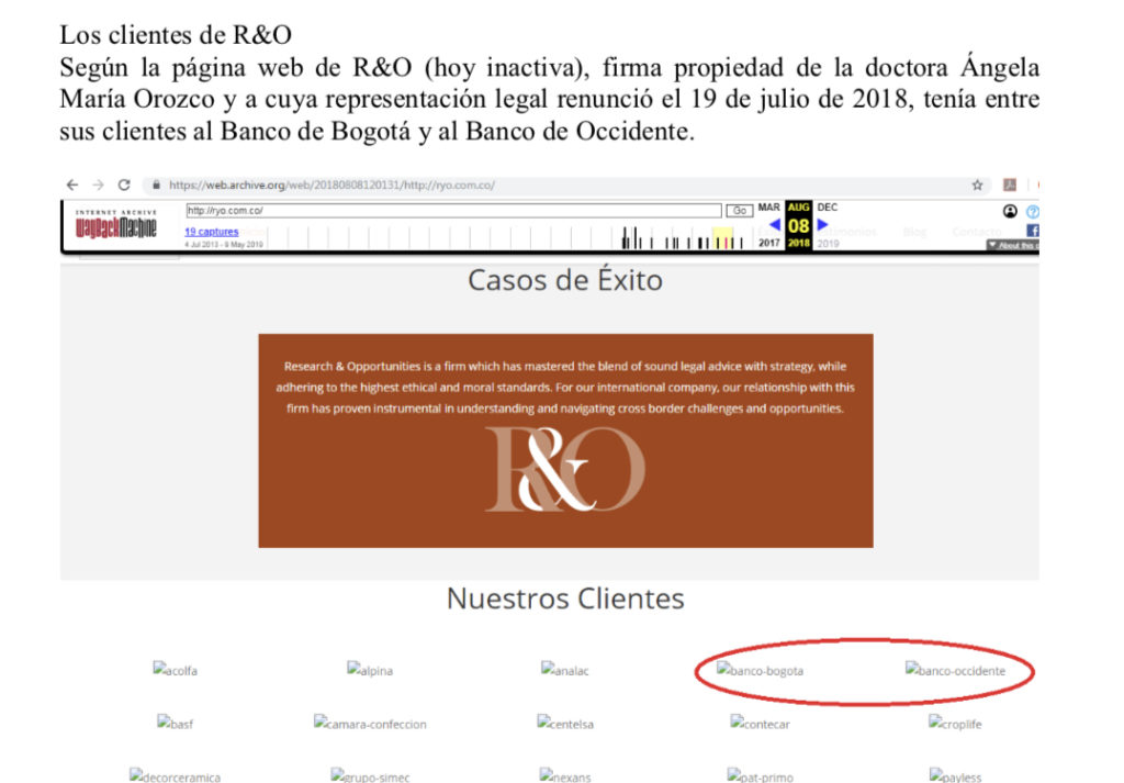 Solo sus relaciones con el Banco de Bogotá y el Banco de Occidente pueden explicar que la ministra de Transporte, Ángela María Orozco, que a comienzos de este año les haya pagado 242.795 millones de pesos a esas entidades financieras, a pesar de que era obvio que estaba legalmente impedida para hacerlo. (ver anexo).