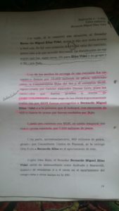 “Uno de los medios de entrega de esa comisión (hace referencia a la plata para Ñoño Elías y Bula) fue un contrato ficticio por 10.000 millones de pesos, celebrado entre la Concesionaria Ruta del sol y el consorcio SION, representado por Gabriel Alejandro Dumar, pues las cantidades fueron entregadas a través de Corficolombiana como pago de obras supuestamente realizadas por SION fueron entregadas Bernardo Elías Vidal o a la persona que él indicara.”