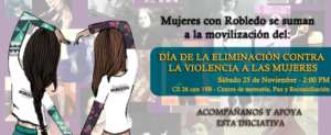 Por este motivo las mujeres con Robledo participamos y acompáñanos la movilización del 25 de noviembre. Invitamos a las personas en Bogotá a unirse a esta movilización que se realizará a partir de las 2:00 pm desde el centro de memoria, paz y reconciliación. Seguiremos movilizándonos en pro de nuestros derechos. Estamos convencidas que si avanzan las mujeres, avanza el país. Ha llegado la hora de que cambie nuestra situación, porque ahora le Toca a las Mujeres y Le Toca a Colombia.