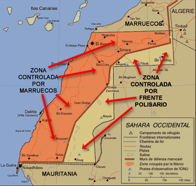 Mientras más de 80 países reconocen a la República Saharaui y al Frente Polisario como los representantes legítimos del pueblo de ese territorio, ninguno acepta los falsos títulosque alegan los reyes de Marruecos para ocupar militarmente una gran porción del Sahara Occidental, abuso que no sorprende porque esos monarcas les niegan los derechos democráticos a los propios marroquíes. Si esta monarquía tan severamente cuestionada por muchas razones puede ocupar a la brava un territorio que no le pertenece, es porque lo impone con 150 mil soldados y una muralla de 2.700 kilómetros plagada de minas, alambradas y fortificaciones que divide en dos el país, más la actuación cómplice de Francia y España –y de Estados Unidos y la Unión Europea–, que así respaldan a sus trasnacionales en jugosos negocios con el rey Mohamed VI y su corte, incluidos el robo de las enormes riquezas pesqueras y mineras de los saharauis.