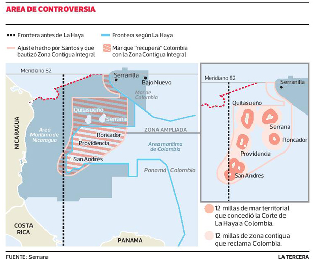En el tapen-tapen diplomático, además del galimatías de Santos de que sí pero que no, rechazo pero acepto, lo mismo pero distinto, chilla la decisión hasta cómica de retirarse del Pacto de Bogotá –que obligó a Colombia a someterse a la Corte de La Haya–, solo que lo hacen ¡varias décadas tarde! Porque en 1980 los nicaragüenses desconocieron el Tratado Esguerra-Bárcenas de 1927 entre los dos países y en 2000 el presidente de Nicaragua, Arnoldo Alemán, anunció que denunciaría a Colombia ante la Corte Internacional de Justicia. Y no reaccionaron en 2007, una vez el fallo de ese tribunal dejó claro que la decisión final sería adversa a Colombia, al no reconocer el meridiano 82 como el límite del mar entre los dos países.