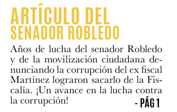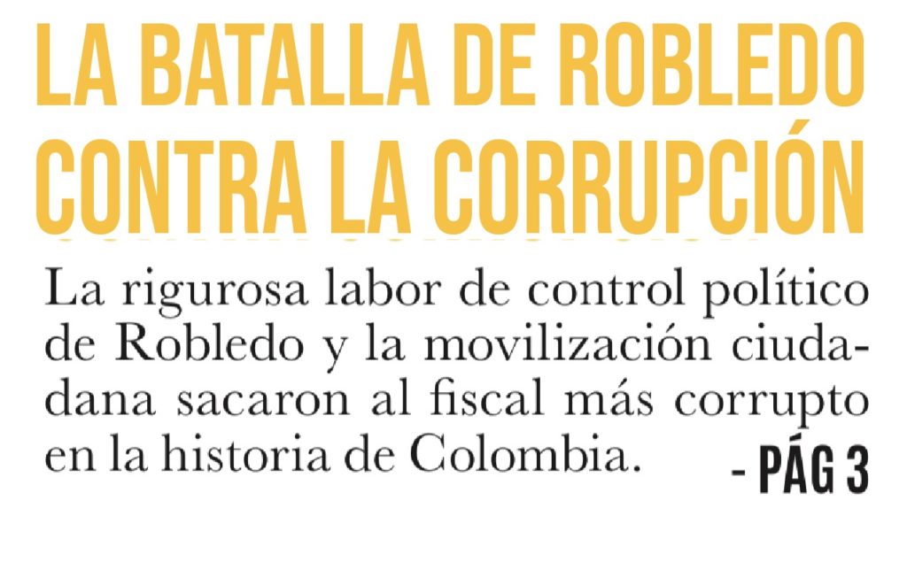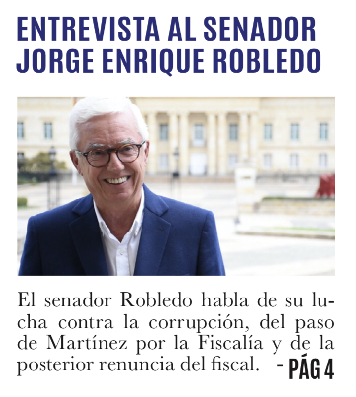 Indice 1. Artículo del senador Robledo 2. Historia de Odebrecht y el fiscal Martínez 3. La batalla de Robledo contra la corrupción 4. Entrevista al senador Jorge Enrique Robledo
