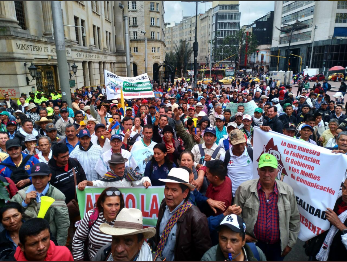 “Le hago un llamado al gobierno Santos y a sus ministros a la sensatez y a actuar con sentido común. Lo que están planteando los cafeteros son peticiones razonables que tienen que ver con la vida de medio millón de familias,” señaló el senador Jorge Enrique Robledo al resaltar cómo líderes cafeteros de doce departamentos están realizando un plantón frente a la sede del Ministerio de Agricultura en Bogotá.