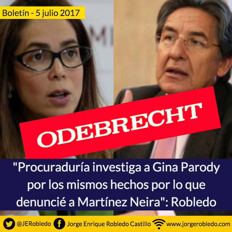 Por los mismos hechos el senador Jorge Enrique Robledo presentó denuncia penal y disciplinaria contra Néstor Humberto Martínez, caso muy similar al de la ex ministra, pues los dos aprobaron el mismo CONPES 3817, que entregó a dedo multimillonario contrato para hacer vía Ocaña-Gamarra, que benefició a personas muy cercanas a ambos funcionarios, en el caso de Parody a su familia, y en el caso del Fiscal Martínez a su amigo y principal cliente Luis Carlos Sarmiento Angulo, por lo que tanto Parody como Martínez tendrían que haberse declarado impedidos y no lo hicieron, lo que constituye un delito y una falta disciplinaria grave.