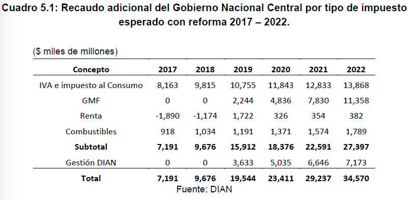 Recaudo adicional del gobierno nacional central con reforma tributaria 2016