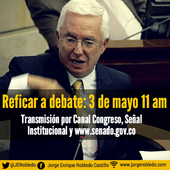 Un debate esperado por los colombianos. Martes 3 de mayo en directo por Canal Congreso y Señal Institucional desde las 11:00 am. Por lo menos US$2.000 millones lo que CB&I nos tumbó a los colombianos. Sistema y normas de contratación pública están diseñados para defraudar al Estado. Funcionarios de los últimos gobiernos a responder.