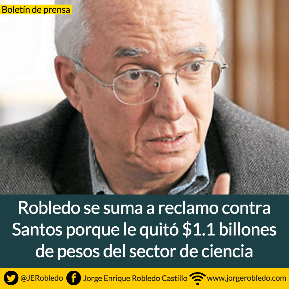 Robledo cuestionó que por la mala política del gobierno nacional los dineros que deberían ser invertidos en proyectos de ciencia y tecnología se terminen perdiendo para el sector y destinándose a proyectos para los que esos dineros no fueron concebidos. “Santos, primero, hizo demagogia al decir que el 10% de las regalías serían para ciencia y tecnología, cosa que no ocurrió porque esa plata se volvió clientelismo y politiquería, y ahora le quita es plata de frente y definitivamente” señaló Robledo.